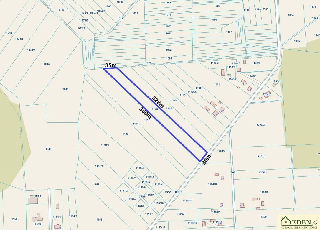 Duża działka o wymiarach ok. 30m x 344m (szer. x dł.) sprawia, iż mamy wiele możliwości aranżacyjnych. Jest idealna pod dom jednorodzinny z dużym ogrodem, sadem lub przydomowe gospodarstwo, natomiast teren rolny może służyć jako przestrzeń zielona, rekreacyjna lub uprawna.