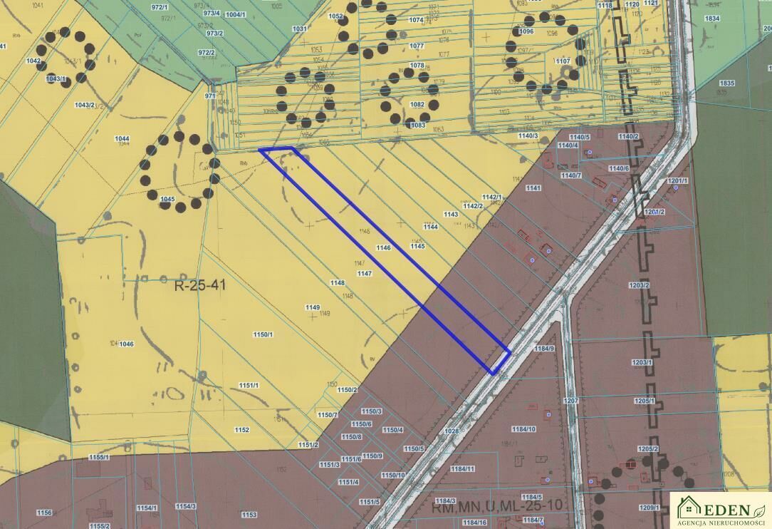 Według Miejscowego Planu Zagospodarowania Przestrzennego jest to działka położona w części na terenie MN,U - teren zabudowy mieszkaniowej jednorodzinnej z usługami (ok. 3000 m) i pozostała część to R - tereny rolnicze (RIVb, RV).
